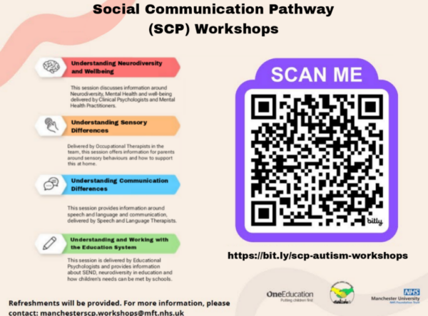 The Manchester University NHS Foundation Trust (MFT) has kindly opened the SCP workshops to all city of Manchester parents and carers. Your child does NOT have to have a formal diagnosis for parents/carers to access this workshop. If you are neurocurious and want to learn more about how you can support children or young people who are or may be neurodivergent then these workshops are for you!