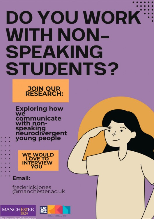 A University of Manchester postgraduate researcher has reached out to ask for participants to get involved with a research project that he is working on, called “Communicating with Non-speaking Neurodivergent Young People: Stakeholders' Perspectives”.The study, led by Freddie Jones and Dr. Rai Fayette from the